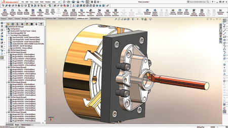 • SOLIDWORKS Integration - Tighter integration with SOLIDWORKS helps ensure that the design and manufacturing models are one and the same. SOLIDWORKS and CAMWorks are fully associative in all aspects, including API Automation with SOLIDWORKS partner products such as DriveWorks, Configurations, MBD and DimXpert annotations, meaning that any change made to a 3-D model in SOLIDWORKS on the design side will automatically be reflected in CAMWorks on the manufacturing side. With this strong connection, machining strategies in CAMWorks are based on annotations from the MBD data provided by DimXpert in SOLIDWORKS. 3D Interconnect in SOLIDWORKS provides associativity to all major CAD formats, from geometry level changes through toolpath generation, reducing CNC re-programming efforts.