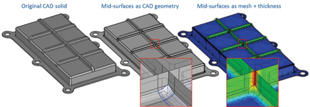 Mid-surfaces can be automatically generated from CAD solids in CADfix 11 SP1.
