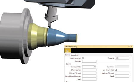 The latest Edgecam software release, Edgecam 2017 R2, introduces a new turning cycle that includes B-axis movements while machining on a turning center. This feature allows greater accessibility when machining complex profiles by dynamically positioning the insert.