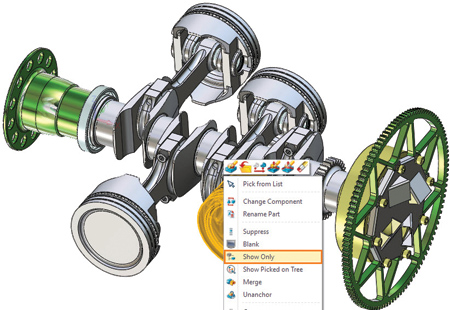 In ZW3D 2017 SP, modeling interactions become more user-friendly. For example, users now can display independent objects easily with the new option "show only," which saves engineers time in finding, showing or hiding objects or components.