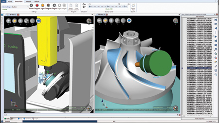 Among the new features of NCSIMUL 2017 and the NCSIMUL 4CAM module are: new probing strategies; support for turning after milling, for one-click NC machine turnaround; cutting tool management with 3-D definitions; one-click project update; project export/import; automatic performance analysis; automatic graphic detection of machining risk zones and less than optimal cutting conditions, and more. The improvements are contained in the NCSIMUL OPTITOOL module of NCSIMUL MACHINE and include algorithms that transform working feedrates into rapid feedrates or specified maximum feedrates for approach and retract motions in both circular and linear toolpaths. The software's air cutting optimization mode can enable users to reduce machining times by 4 - 25% by minimizing air-cutting motions and optimizing entry and exit feedrates. This results in immediate and automatic savings on every part produced, even on existing programs.