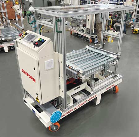 Creform will feature several products at the 2025 Assembly Show, booth 731. Pictured is a single-direction AGV with conveyor deck.