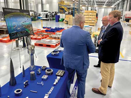 Governor Tate Reeves tours the GA-EMS Tupelo, MS, site with Scott Forney, President of GA-EMS, and Pete Rinaldi, VP of Manufacturing Operations.