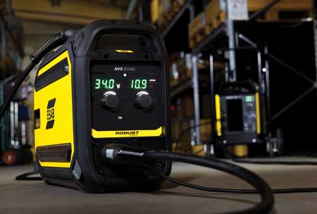 ESAB'S RobustFeed AVS ECHO automatic voltage-sensing wire feeder features new ECHO communication technology that allows voltage adjustment at the feeder without a communication/control cable to the power source. The RobustFeed AVS ECHO works with the Warrior 500i CC/CV multiprocess welder with the ECHO technology upgrade option.