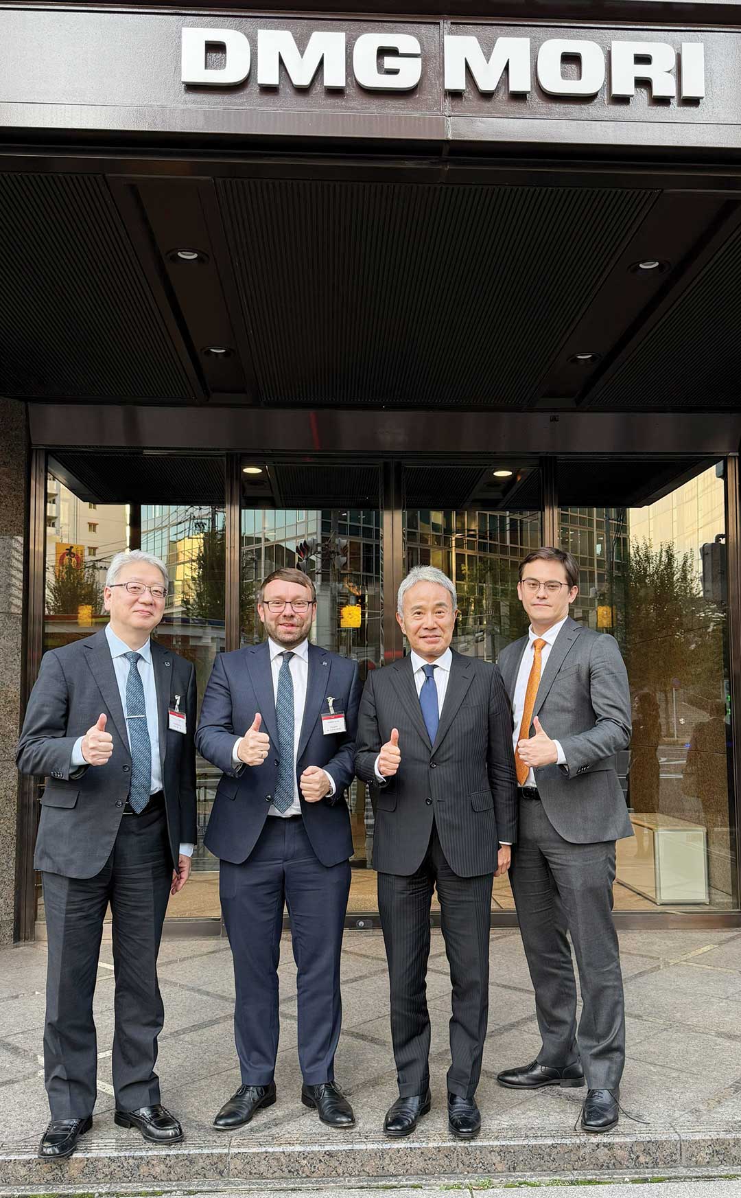 (l-r) Koichi Nosaka, President HAIMER Japan K.K.; Andreas Haimer, President Haimer Group; Dr. Masahiko Mori, President of DMG MORI Co., Ltd.; and Kentaro Blumenstengel, Executive Officer DMQP and President of DMG MORI Technium