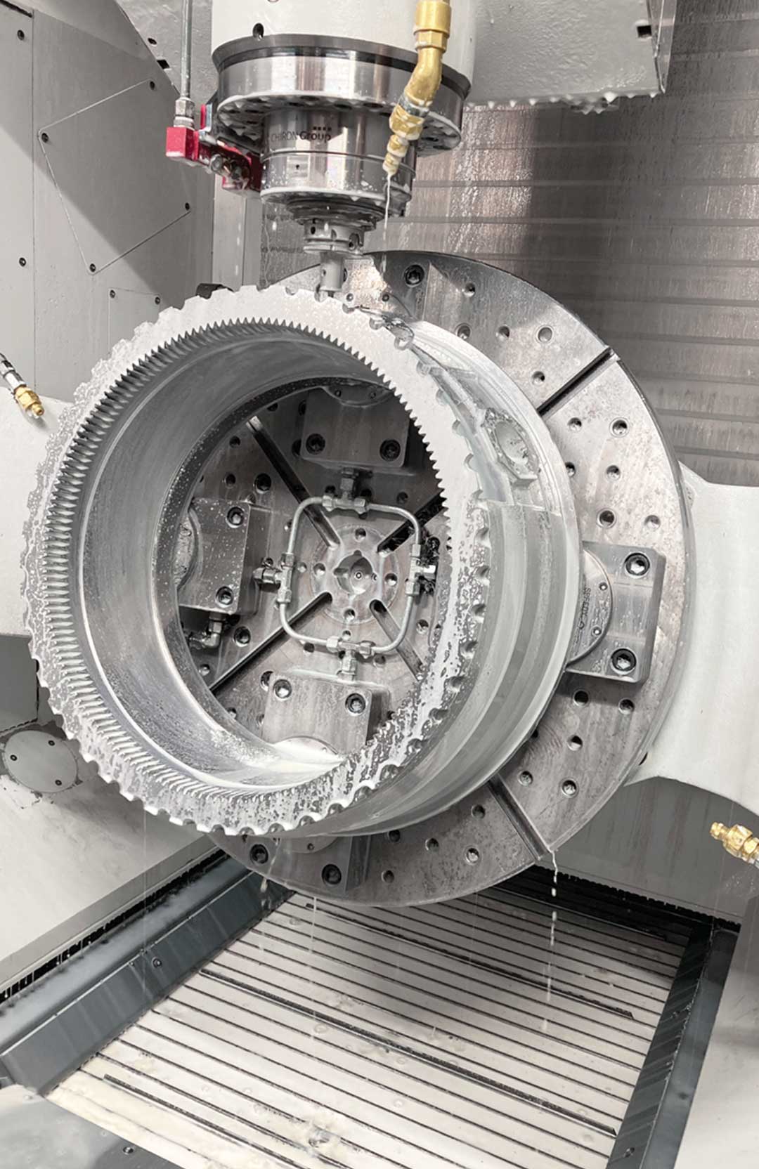 Attendees were able to follow five processes live on the FZ 19 S 5-axis during the machining of a turbine housing: rough machining, turning, skiving, drilling, and simultaneous 5-axis milling.`