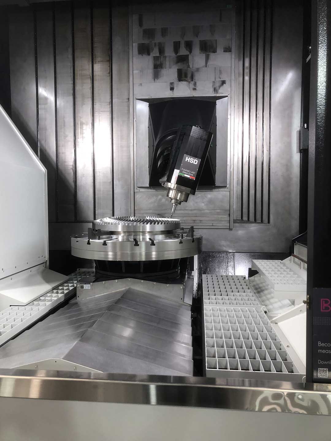 The ASM integrates a 5-axis universal head direct-drive system powered by D.D. motors. Through detailed topology analysis, it achieves optimal distance between the tool center point and the B-axis transmission, enhancing precision and stability. The system includes complete tool and part probing, as well as advanced 5-axis kinematic calibration.
