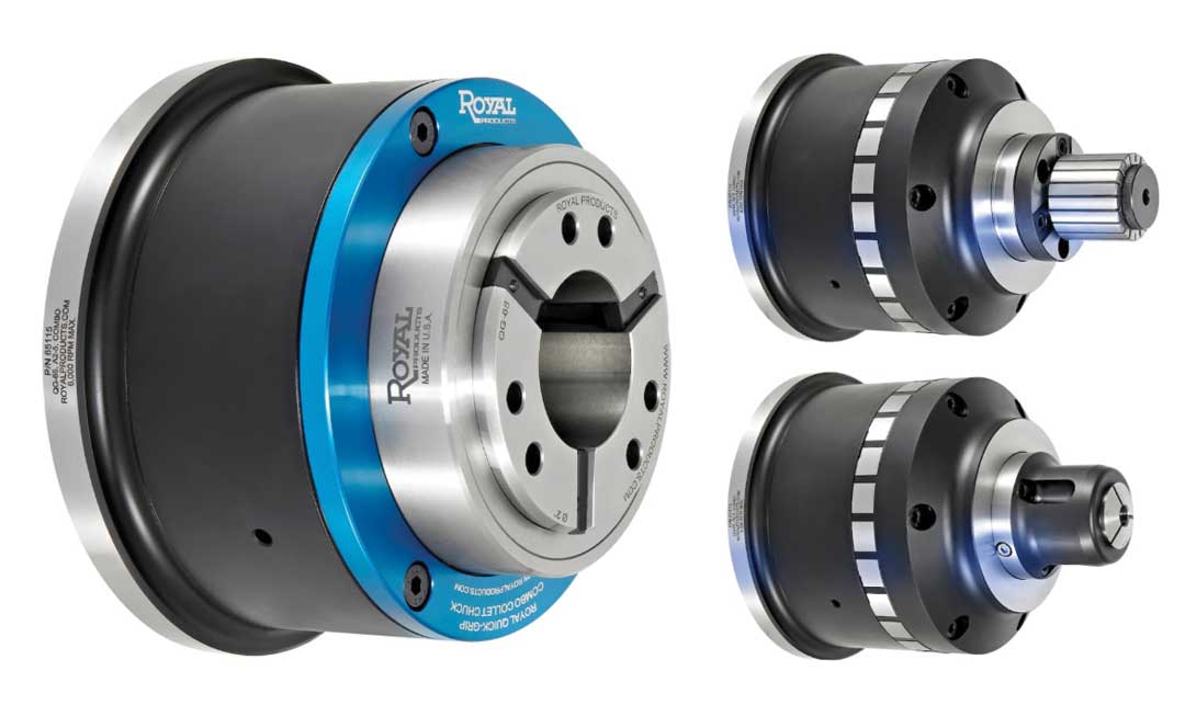 "Unlike other combination chucks that are based upon a pullback collet design, the Royal QG Combo Chuck is modeled on our Accu-Length design, ensuring precise part transfers from main to sub with no risk of Z-axis part movement," said a company spokesperson. "This makes the Royal QG Combo chuck a much better solution for sub-spindle applications compared to the pullback models offered by others."