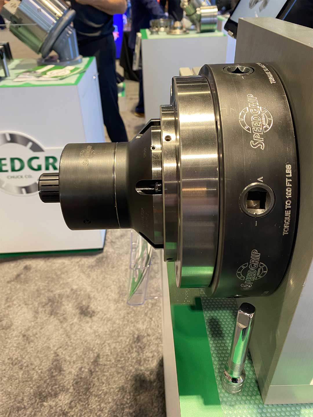 Speedgrip Chuck Company's QCR Quick-Change Receiver is a manually actuated cam-lock receiving plate that attaches to CNC lathe spindles and reduces the time needed to change workholding clamping devices.