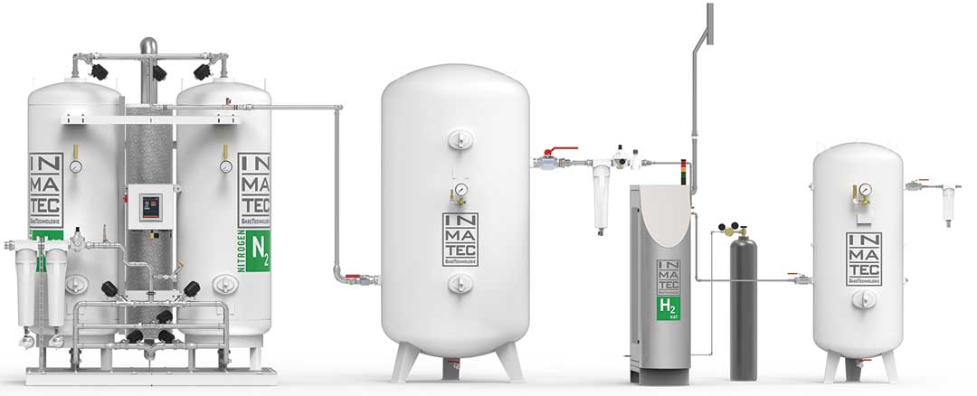 Laser cutting has become established as a precise procedure in industrial metal processing. Maximum material quality requires a stable inert gas atmosphere in the form of extremely pure nitrogen. INMATEC Gase Technologie provides a solution that allows an energy-efficient and economical nitrogen self-supply right onsite that suits the company's requirements: a combination of the PNK nitrogen generator and the H2KAT hydrogen catalytic converter.