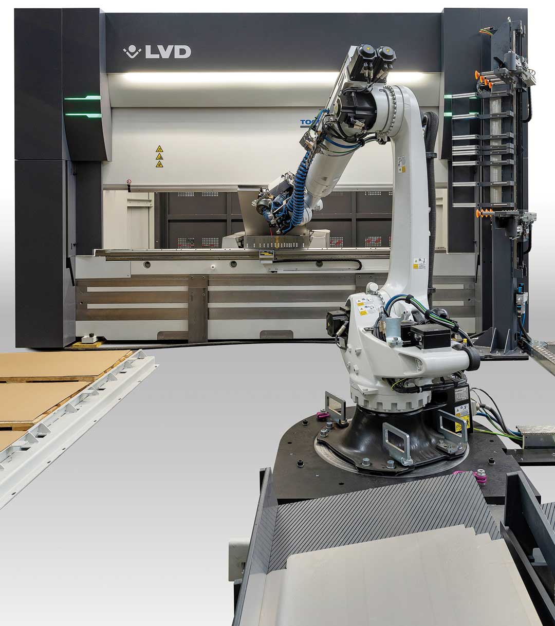 LVD's Robotic Bending Systems meet the specific automation goals of each customer, whether for short production runs with frequent changeovers or high-volume batches of complex parts. A user-configured bending cell increases process reliability and speeds the return on investment.