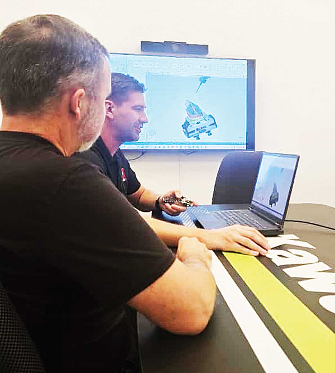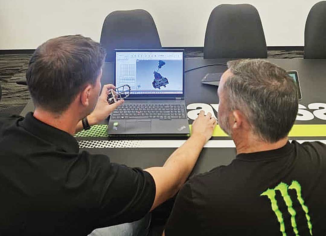 After looking over the bike and reviewing feedback from the racer, Robinson and Aiple program part changes and simulate toolpaths before machining