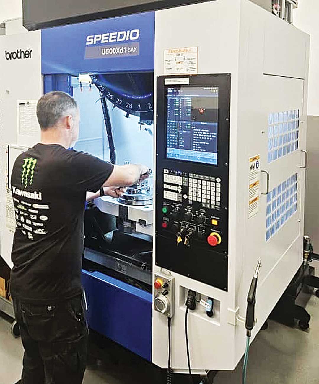 The footpegs and brackets were machined from titanium, which is expensive and difficult to machine. The Kawasaki team had recently added a tilting rotary table to its 3-axis mill; this would be the first time machining in a 3:2 set-up.