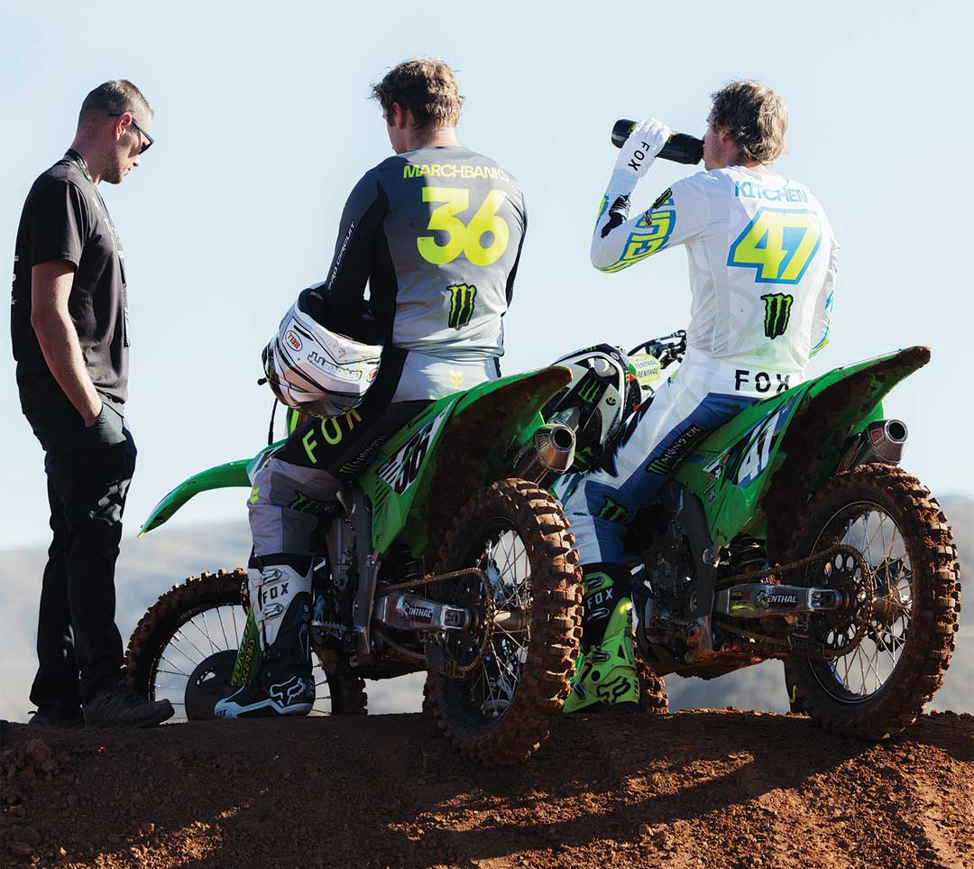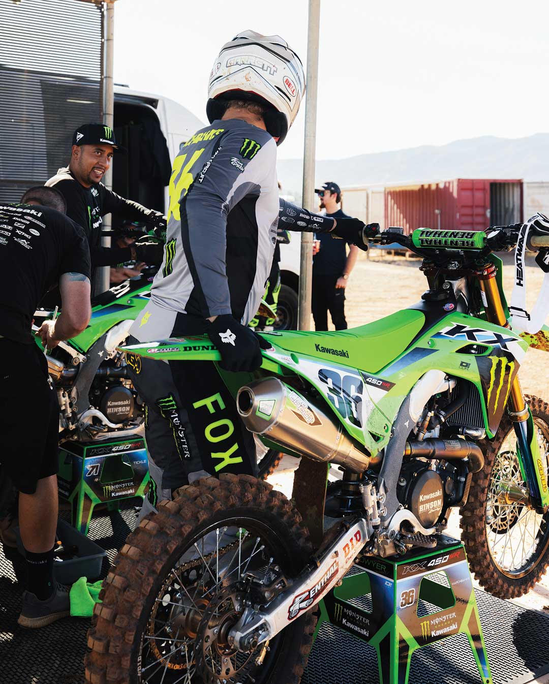 The Monster Energy Kawasaki race team, competing in the AMA Supercross, Pro Motocross, and Supermotocross championships, has a brutal schedule. There are 31 races starting in January and finishing at the end of September with races nearly every Saturday. The team heads back to the shop on Monday morning to go over what went on over the weekend, and the process starts all over again.