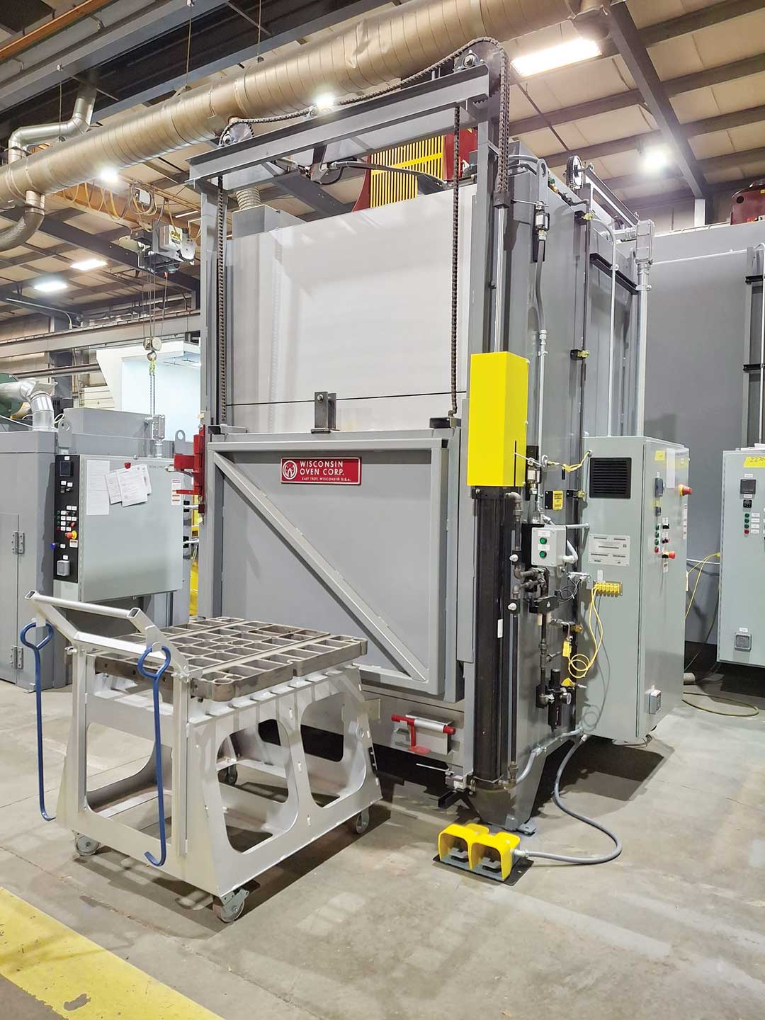 This equipment is engineered to meet the critical safety requirements of the customer and stringent demands of aerospace heat treating. It has combination-style airflow (delivering horizontal and vertical upward flow) to help ensure optimal heating rates and consistent temperature distribution across the product. Uniformity has been verified through a Class 1 Temperature Uniformity Survey (TUS) conducted at Wisconsin Oven's facility in accordance with pyrometry specification AMS 2750H. The system achieved temperature uniformity of ±5 °F at 200 °F, 700 °F, and 1,200 °F.