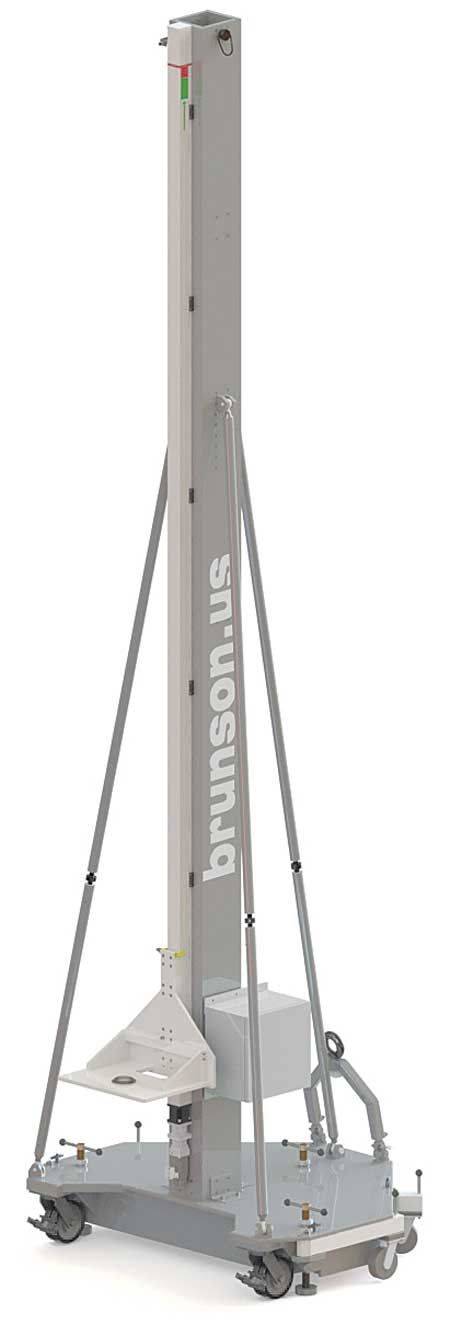 Brunson Instrument Company offers a large-scale motorized vertical tooling bar (MVTB) with a new small footprint design. Brunson's line of MVTBs provides users of laser trackers, laser radar, theodolites and other portable measurement devices with a stable metrology platform at high elevations up to 34' (10.4 m) above the plant floor. The MVTB is a Brunson built-to-order product.