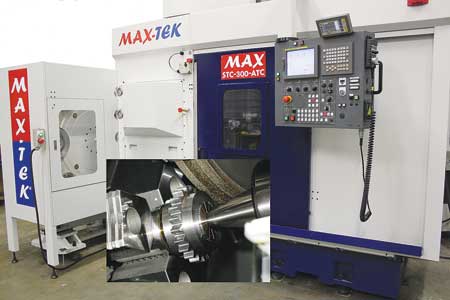 "Max-Tek Superabrasive Grinding Systems utilize plated and vitrified CBN grinding wheels for fast, efficient and economical material removal. Heavy stock removal in interrupted cuts and cost saving performance on difficult to machine materials over a wide range of part applications are two of the main benefits of superabrasive machining," said a company spokesperson. The STC-300 ATC Superabrasive Turning Machine offers an eight-wheel automatic wheel changer for use with plated, vitrified and conventional grinding wheels. Multiple grinding operations requiring several wheel shapes and finishing characteristics can be performed in a single set-up. A wheel dresser disk is mounted on the work spindle to provide profile dressing of wheel shapes. The STC-400 Superabrasive Turning Machine delivers heavy stock removal and exacting surface finishes for a wide range of part requirements. It is specifically outfitted with a hydraulic chuck and tailstock for the machining of difficult interrupted cut components such as pump and compressors impellors up to 25 inches in diameter. All Max-Tek Superabrasive Turning machines can be designed to do peel grinding, have automatic loading and unloading, and do in process and post process gauging.