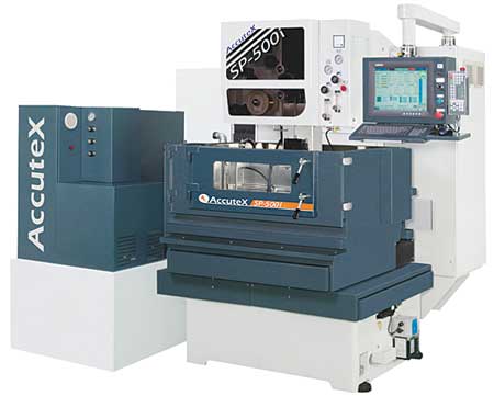 The AccuteX SP-500i 5-axis CNC wire EDM features the new generation MST-II Microsparking Technology. "AccuteX's MST-II utilizes Embedded Programmable Gate Array (EPGA semiconductor) within its CNC control to simultaneously discharge the proper amount of energy directly to the servo unit, stabilizing spark to cut and producing fine finishes for the aerospace and medical industries," said a company spokesperson.