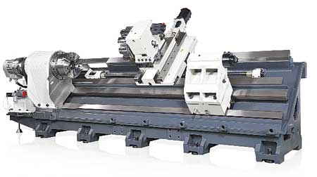 The ribbed Meehanite cast iron mono-block casting, with hardened and ground hand-scraped slideways, helps resist deflection and vibration during heavy machining and helps provide stable end-to-end cutting of long shafts.