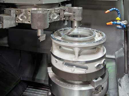 The Samsung SLV80 twin spindle CNC vertical turning center is capable of turning diameters up to 25". The machine is most commonly used by TapeMaster to produce large transmission housings for the heavy equipment industry. It is currently running a series of low volume flywheels.