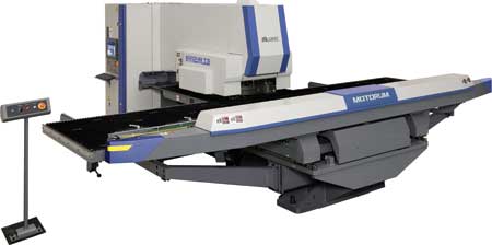 The Motorum M2048TS offers the option of either Wiedemann or Spring Style tooling and incorporates a new FANUC control with Murata's proprietary Intelligent Control Interface. The M2048TS offers retractable forming tools that eliminate forming die interference. Its large table accommodates 8-ft. sheets without a reposition and 16-ft. long sheets with a single reposition. A controlled punching stroke and urethane transfer balls enable the machine to operate more quietly. Turret capacity can be expanded with 12-station Varitools.