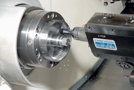 The BENZ LinA broaching system changes the rotary motion of the live tool turret into a linear motion for broach and spline machining on turning centers.