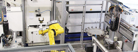 Also offered by GMTA is the Arnold two-station laser cell, which is used in a similar fashion to the compact cell, but offers a variety of geometries in the laser welding, including axial and radial seams, plus an integrated pressing function. The processing optics move on a cantilevered arm to the individual work stations, processing radial or axial seams without changeover of the swiveling optic head.