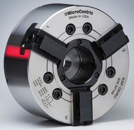 "MicroCentric Corporation has announced the KSF line of high precision three-jaw power chucks featuring a patented Rapid Change Jaw System, allowing the top jaws to be changed faster than any other chuck on the market, including quick jaw change models which require both the top jaw and base jaw to be changed as a unit," said a company spokesperson. Utilizing Rapid Change helps to eliminate investment in multiple sets of base jaws or expensive monoblock style jaws while retaining the benefits and savings of quick change chucking.