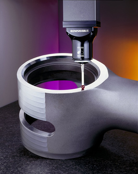 To integrate off-machine gauging the cell uses robot handling and data connectivity. It provides automatic tool offset control and point-of-manufacture quality assurance, keeping the machining process centered and giving confidence in the quality of parts before they progress to the next process. When all machining and finishing processes are complete, CMM inspection is used to verify the final parts meet specifications.