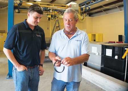 (l-r) Matthew Dobias and Tom Ingersoll discussing the Birchwood Technologies finishing results after the system was initially set up.