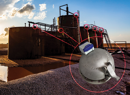 As the Hatch Watchdog constantly monitors the status of a tank hatch, operators can immediately respond to any deviation from the hatch-closed position. With pending C1D1 certification for hazardous locations, this sensor has an operating range of 1/2 mile and a battery life of more than five years. In addition, the sensor attaches to the hatch with an epoxy adhesive, eliminating the need for tools.