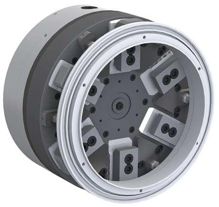 SMW Autoblok offers the SJL 6-jaw (2+2+2) equalizing chuck. This high precision power chuck is ideal for clamping easily deformed, out-of-round, thin walled components while providing the flexibility to hold workpieces as a true 6-jaw self-centering chuck. Specifically designed with a centrifugal force compensation system, this feature allows for higher speeds and feeds and overall faster production.