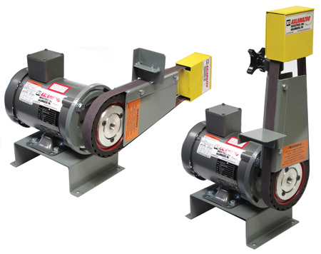Kalamazoo Industries model BG142 belt grinder was first designed as a custom grinder to meet a specific customer need, and now has been added to the company's growing line of standard grinders. The grinder offers multi-position contact from vertical to horizontal and full work movement from left to right. The grinder was designed for aggressive grinding and beveling with the platen in place. Remove the platen and the narrow belt allows slack belt grinding and finishing of tight inside radii parts.