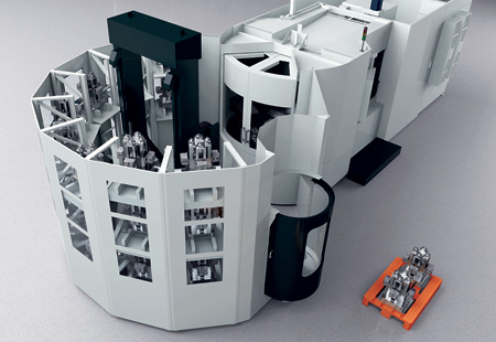 Higher efficiency and simple operation are the goals of an intelligent automation concept independently of the size and weight of the part. Such systems shift the set-up of the workpieces from the machine to a separate set-up station and store the pre-fitted workpieces in an intermediate storage area. The setting up and the machining are thus decoupled. The pre-fitted workpieces stored in the system compensate for short and long machine running times, and allow shifts with very little or even no manpower at all, which in turn allows unit prices to be optimized by up to 20%.