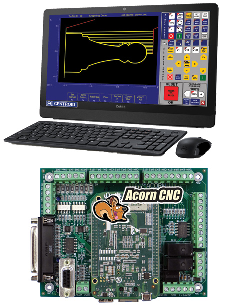 Centroid has announced an all new CNC controller kit aimed at the OEM and do-it-yourself (DIY) CNC control builder called the Acorn CNC controller. "The Acorn CNC controller is a 4-axis CNC control system that combines Centroid's CNC12 CNC control software and offers the DIY user industrial grade CNC features, options and performance at an entry level DIY price point," said a company spokesperson. Both mill and lathe CNC software are included with the Acorn CNC control kit. Acorn is both a CNC hardware and CNC software solution. The CNC control board hardware and CNC12 control software are included with the kit along with a logic power supply and hookup cables.