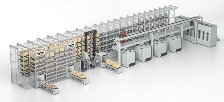 The customer is able to combine preconfigured modules as needed to match production handling needs: the storage locations can be arranged in a circular pattern, with one or more machines, or in a line.