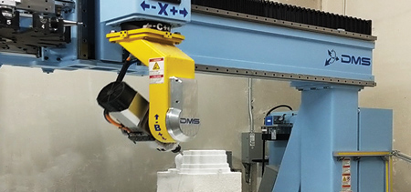 The machine is designed to handle both complex operations and large parts. A stationary bridge and moving table facilitate more efficient hardware positioning and faster load times. The machine features an integrated tool changer that can adjust automatically to tool length offsets and the programming can compensate to a tool-center-point at the tool tip, allowing for more rapid and accurate machining.