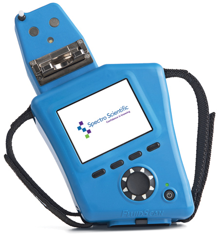 Patented FluidScan technology collects light transmitted through one drop of a fluid sample and registers the infrared absorption spectrum. The analyzer compares spectrum data to a built-in fluid reference library and provides rapid, on-site analysis of in-service lubricants. Analysis takes less than one minute, users need no special training and the process requires no solvents or complicated cleanup.