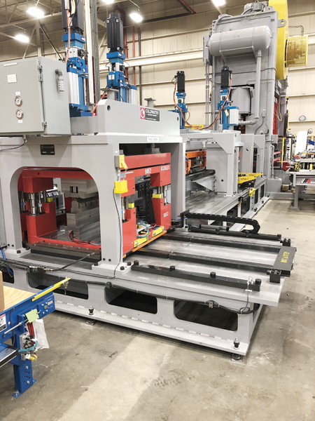 Coldwater Machine Company, a Lincoln Electric Company, has recently shipped a flexible wrapper and control panel fabrication line to Texas for the fabrication of 14 different sizes of air conditioning units. Based upon customer specification, Coldwater was the designated integrator responsible for coordinating the coil processing equipment and the mechanical press and tooling suppliers, as well as for the quick die change, post-mechanical press operations and the master controls of the entire line.