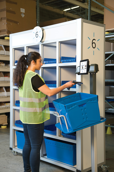 Mobile Sort stations consist of smart kiosks, mobile put-to-light walls with validation sensors that work with 6RS' cloud-based software and 6RS collaborative robots, called "Chucks." "6RS' intelligent allocation engine continuously generates highly optimized batches of work that groups orders into the most efficient picking jobs, minimizing walking," said a company spokesperson. Chucks deliver empty totes to associates in active picking areas and direct associates to complete picks. Totes are then delivered to take-off points, where they are sorted into orders using the Mobile Sort stations.