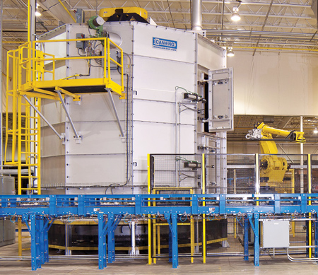 Can-Eng Furnaces is designing and commissioning a high-capacity heat treatment system for a Tier 1 global automotive manufacturing company. The new system provides T-6 and T-7 processing capabilities for lightweight aluminum High Pressure Die Casting (HPDC) automotive components.