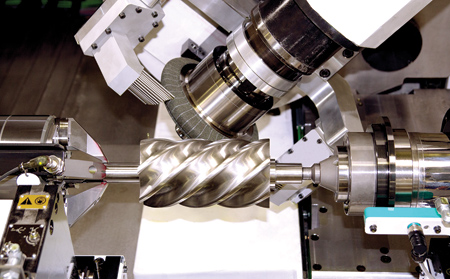 The rotor grinding machine processes and measures the workpieces and compensates for deviations from the nominal geometry-all in a single machine. "The resulting repeat accuracy means that the rotor pairs are perfectly coordinated," said the spokesperson. The grinding operations comprise rough grinding the profile, grinding the outer diameter and ?at shoulders in a QUICKPOINT process, and finishing the screw profile. Subsequently brushing the workpiece in the same clamping set-up is an additional option.