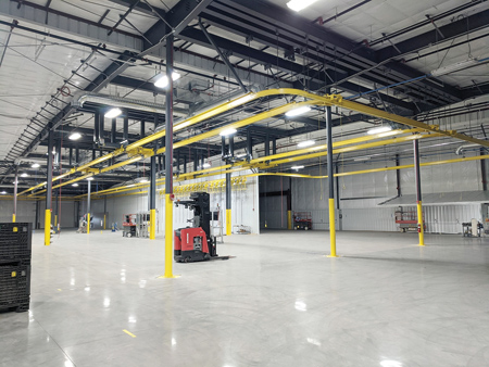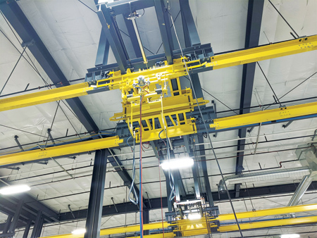 The system consists of 1,240' of monorail, which combines with 11 switches and four custom shuttle crane stations.