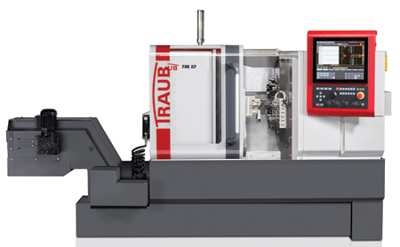 The TNL12 incorporates the current TRAUB TX8i-s control, which offers Industry 4.0 connectivity via INDEX's iXworld platform. The folding and swiveling operating panel includes a 19" touchscreen and provides easy access to a networked production environment.