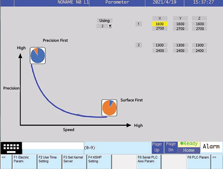 - Intelligent Grinding Assistant System: Sets parameters based on prioritizing the machining process for precision or speed in order to improve application efficiency.
