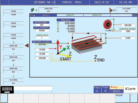 - SMART Grinding Path: This feature automatically minimizes air cutting strokes during grinding of such irregular shapes as I, L, Z or triangular. It also automatically removes invalid cutting strokes and improves overall processing efficiency up to 40%.