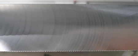 With the optimum combination of cutting speed, feedrate and depth of cut, the robot produces better surfaces than required. Chatter marks remain absent.