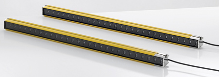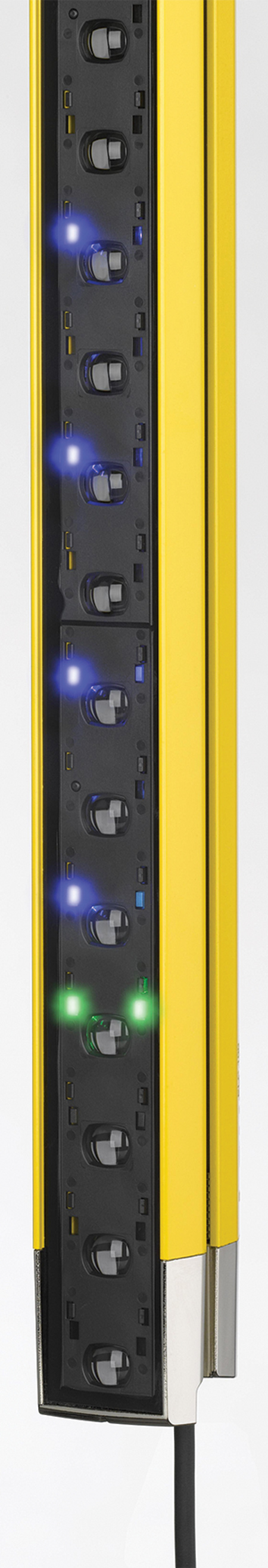 Their high resolutions of 17 mm and 30 mm reliably detect fingers and hands. The protective field extends to the edge of the housing. As a result, the devices can be mounted flush at the boundaries without any dead zones occurring. The cable outlet is specially constructed to enable flexible integration of the devices into the machine design. The cable can be oriented in any direction. The safety light curtains are also optimally designed for access guarding on machines and systems, since the protective fields are up to 1,500 mm in length. Due to their high shock resistance, the safety light curtains are also suitable for safeguarding points of operation on presses.