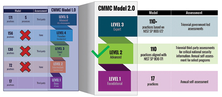 In 2021, CMMC 2.0 changes limited the focus for certification to the federal standard by removing the 20 extra controls. "This landscape is still evolving, so companies should carefully consider outside assistance to reach compliance," said Boothe. "Manufacturing companies will need to find outside consultants and IT Managed Service Providers if they do not have sufficient internal resources to meet these new requirements."