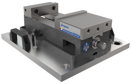 The new Jergens 5" heavy duty vise provides tight tolerance and facilitates easy handling across the range of CNC machining applications (shown here with the Ball Lock quick change fixture plate kit).